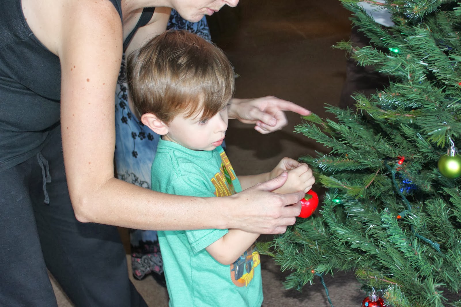My mom always jokes with us that when we were kids, we would hang all our ornaments on the same branch. Well, now I can see why she said that. Henry did the exact same thing! Every ornament went on one branch!