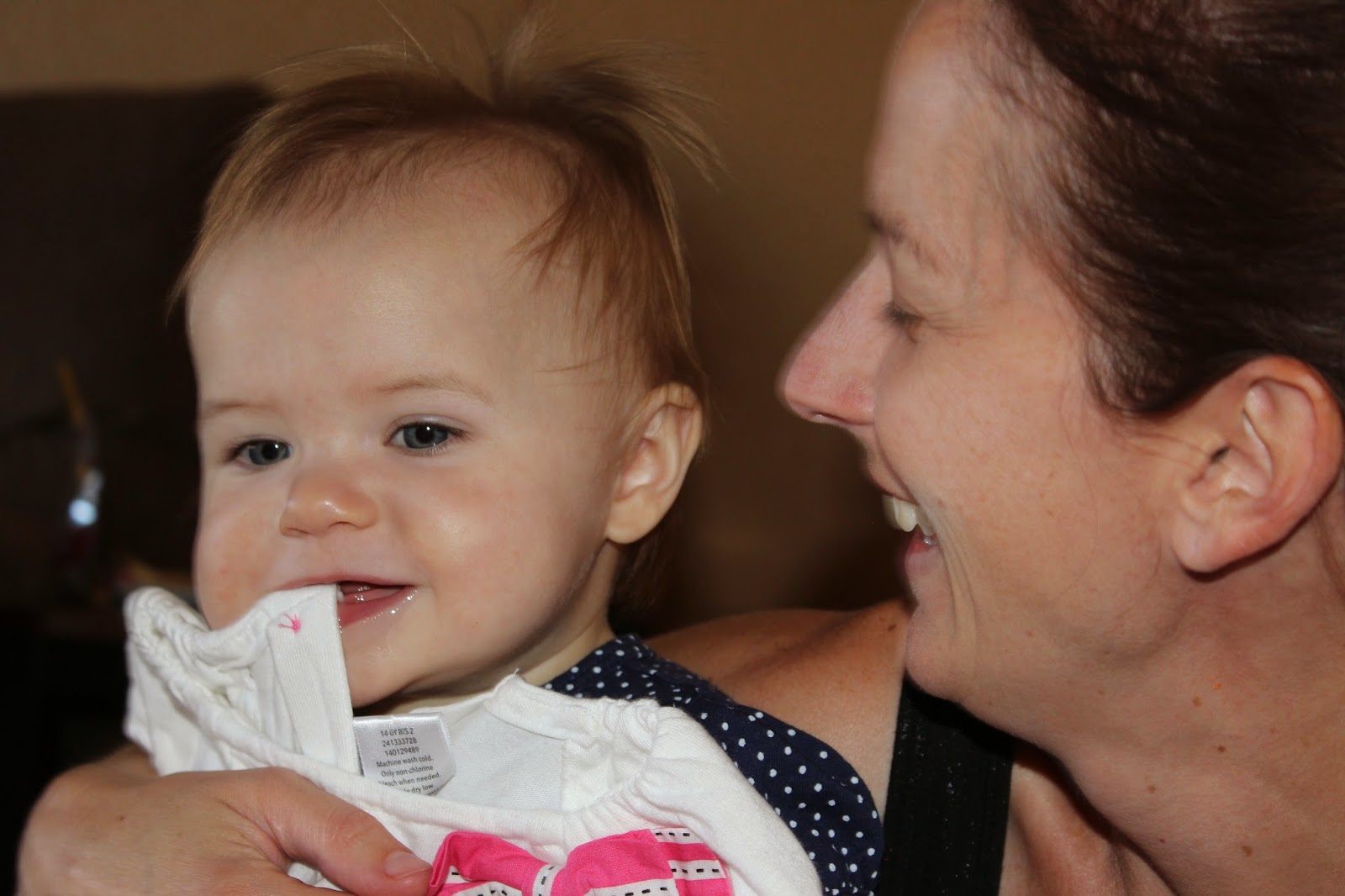 Spencer just wanted to chew on the cute dress Auntie Em got her.